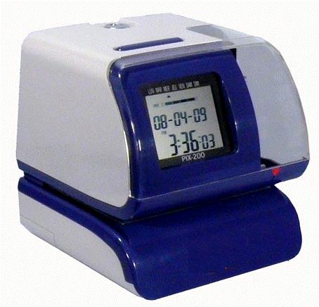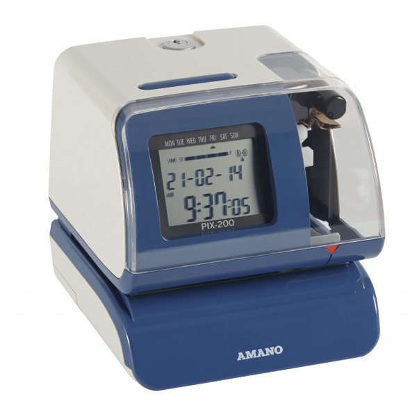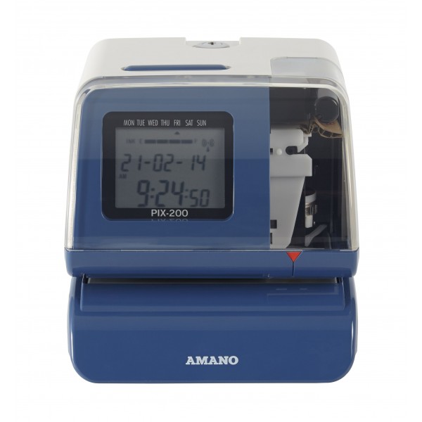 Capacité à recevoir le signal de l’horloge atomique Capacité à recevoir le signal de l’horloge atomique Modifie automatiquement l’année, le mois, la date et l’heure d’été Imprime l’heure en temps normal ou militaire; AM ou PM, 0-23 heures, minutes, dixièmes ou centièmes Fenêtre d’impression éclairée pour un alignement facile des cartes Indicateur de capacité d’encre du ruban 13 impression de message, (RCVD, SENT etc. dans 6 langues (Eng, Span, Ger, Ita, Fre, Por) 31 formats d’impression prédéfinis sélectionnables Numérotation consécutive avec fonction de réinitialisation automatique Impression personnalisée des commentaires (jusqu’à 3 lignes) Grand écran numérique facile à lire Réglage de la position d’impression du levier coulissant Bouton de montage supérieur pour l’impression manuelle Ruban de cartouche Batterie de secours Support de table ou mural La sauvegarde de 3 ans conserve la mémoire et les paramètres